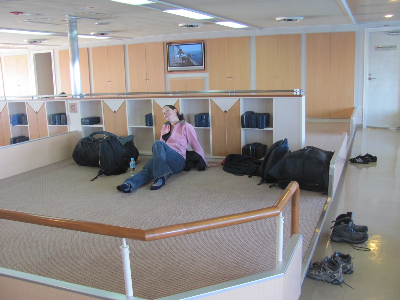 We didn't expect much from the ferry, but it appears it's quite different from any ferry we have seen or traveled on: There were no seats. It was Japanese style: You take off your shoes and sit on the floor.
